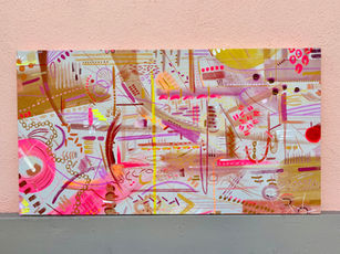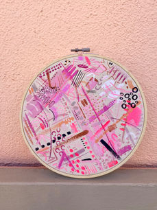 the large paintings are stretched onto heavy duty bars. the hoops are finished by stitching the canvas in the back. each painting is prepped for hanging, signed on the back, and available for shipping or local pickup (los angeles)